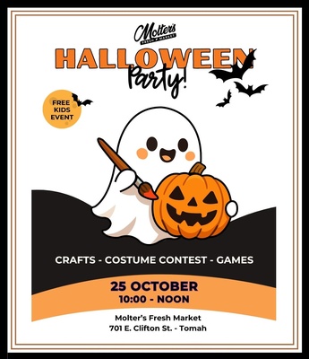 It's a Halloween Party! Bring the kids dressed in costume for this free, fun event! Enjoy crafts, costume contest, and games.